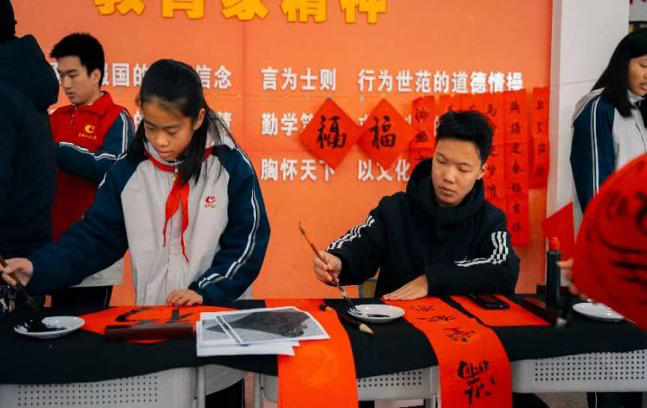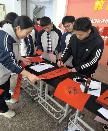 时值丙午马年新春将至,校园中早已缀满灯笼与彩饰,处处洋溢着温煦而浓厚的年节气息。承蒙母校团委相邀,身为南工学子的他,怀踹着对书法这一中华优秀传统文化的赤诚热爱,满怀热忱投身于“写春联·送祝福”的活动之中。教学楼大厅里,长桌铺展,红纸如霞,他与几位同好执笔相对,在淡淡的墨香间将一句句吉祥的寄语倾注于笔端。点画提按之间,不仅是对传统书法的致敬,更是为辛勤耕耘的师长与朝气蓬勃的学弟学妹,送上自己最诚挚、热烈的新春祝愿。