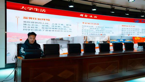 在学校的多功能梯形教室里,他面对座无虚席的学弟学妹们,依托精心制作的PPT,全景式呈现了他的大学学习与生活图景。他将南昌工学院的“五色”风采、深厚的校园文化,以及个人成长中的真切感悟娓娓道来。
